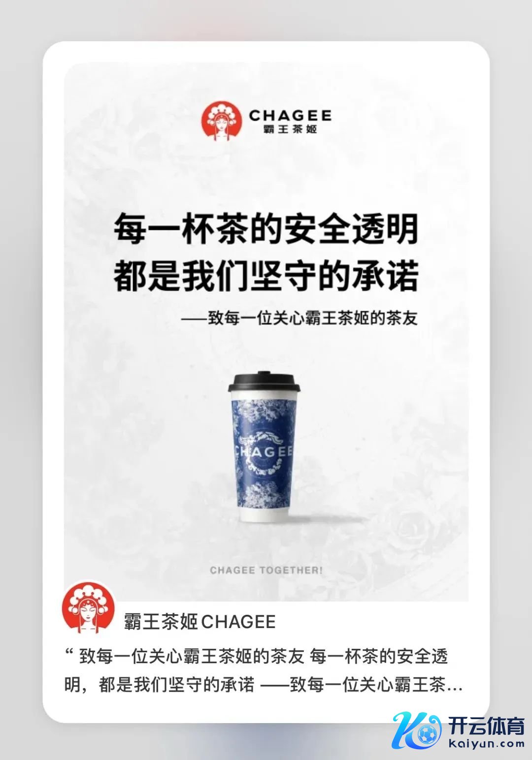 行动新茶饮代表,近日霸王茶姬也在其官方渠说念发布了《每一杯茶的安全透明,王人是咱们信守的甘心》,通阻难答神气解答了用户狐疑。
