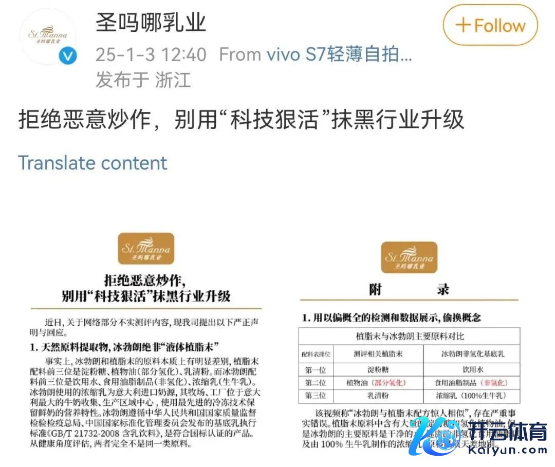 同日,冰勃朗分娩厂家@圣吗哪乳业发声明回话称,隔断坏心炒作,别用“科技狠活”抹黑行业升级。
