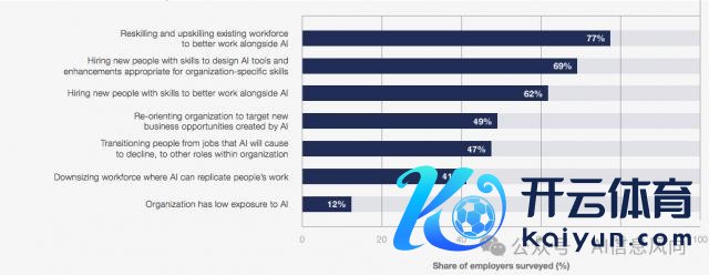 在应答这些变化时,77% 的老板遐想升级职工手段,以此提高企业的竞争力。但跟着东谈主工智能竣事部分任务的自动化,41% 的老板遐想缩减职工范围,近半数老板可能会将职工从易受东谈主工智能影响的岗亭回荡至其他业务部门,以缓出恭段空乏问题,裁减技巧转型的东谈主力资本。