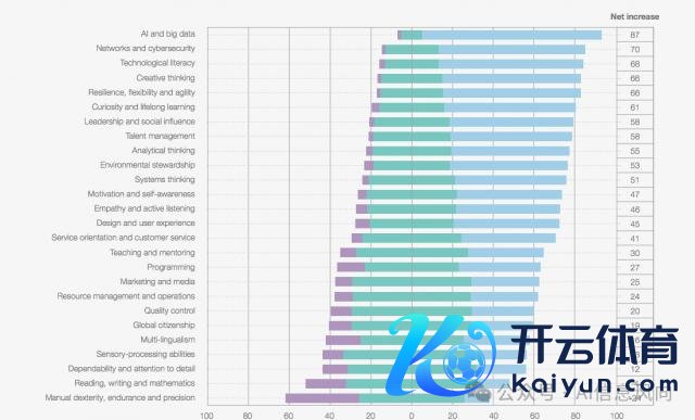 在手段需求方面,东谈主工智能、大数据和收集空间安全等界限的技巧手段需求瞻望快速增长,而创造性念念维、韧性、纯真性和敏捷性等东谈主类手段仍是至关伏击。异日,两者的有机推测将成为很多增长岗亭的必备条款。