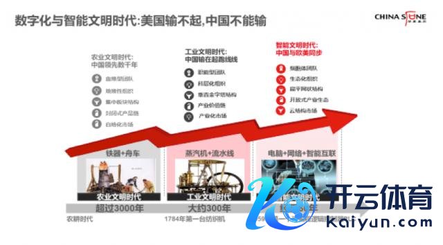 第一个基本不雅点,数字化、智能化不单是是一种概括技艺的应用,更遑急的意味着东谈主类社会进入了全新的期间。东谈主类文雅如果分三大阶段,农业文雅 3000 年,工业文雅 300 年,智能文雅即是 50、60 年的历史,而真实的数字化、智能化也就十几年的历史。