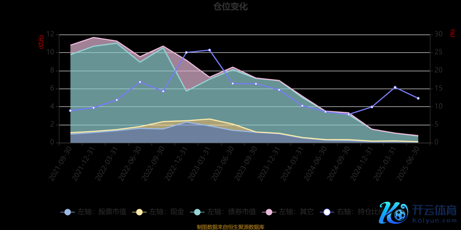 据如期论说数据统计,近三年平均股票仓位为14.73%,同类平均为18.92%。2023年一季度末基金达到25.68%的最高仓位,2024年三季度末最低,为7.85%。